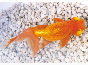 带绒球的朝天龙。三十年代初出现过一种金黄色的,近年新出现的体色为正红。由于它的眼球向上,绒球也水平生长。