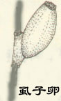 蝽象的卵,上下两头齐乎,中间略粗,很保是个鼓或木桶。卵壳表面有明显的环状纹和不同形状的刻点,顶端有一个便于若虫孵化时钻出的盖子(卵盖)其上有一圈栅栏状的小刺或球状物。卵盖周围的卵壳薄而易裂, 孵化时只要小若虫头部一顶就开,好似打开一扇天商,便于爬出。