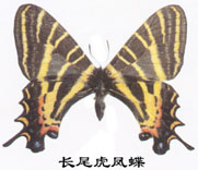 本种与中华虎凤蝶(L. chinensis)很相似,但前翅及后翅的黑色横带比中华虎凤蝶宽,留出的黄色部分很窄,在中室下尤其明显;特别是后翅的尾突不仅长,而且比虎凤蝶属的任何一种都长,故称长尾虎凤蝶。