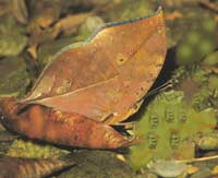 枯叶蛱蝶属Kallina也许是在动物中被最常引用的自然伪装的例子。当休止时,其前后翅形成一片具柄的椭圆形的大叶片。其颜色基本上与枯叶一致。翅反面的花纹具“中脉”,甚至“瑕疵”,例如“蛀孔”及“霉斑”等。这些蝴蝶是如此精确地模仿枯叶的自然形态,致使自然学家一直对它们惊叹不已。