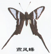 别名:燕尾凤蝶,粉白燕凤蝶,珍蝶,蜻蜓蝶,白带燕尾凤蝶,白带燕凤蝶。