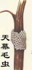 老熟幼虫体长50-60毫米;头部灰蓝色,有黑色圆斑一对;身体颜色复杂鲜艳,背线白色,亚背线橙黄色,间杂有黑色斑点及条纹,气门上线灰蓝色、较宽,间杂黑色斑纹,气门线黄色,气门下线灰蓝色,腹面灰白,腹部第8节上有一对蓝黑色毛瘤,气门筛黑色,围气门片黄色;身体各节有小毛瘤,上面着生黄褐色或浅黑褐色长毛;胸足黄褐色,腹足黑褐色。