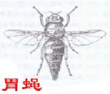 马胃蝇寄生于马、驴、骡的胃中。成虫外观似蜜蜂。体长16-20毫米。飞行缓慢,产卵于马的前腿、肩部、胸部及腹部等处的毛上。卵细长、淡黄色,经10-14日孵化。