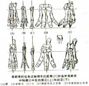 在5000万年前始新世早期的北美大陆,一种狐狸般大小的食草动物从原始的踝节类里脱颖而出,它被称为始祖马,实际上,它不仅是现代马的始祖,而且是与马有密切亲缘关系的整个奇蹄类动物的最早类型。从此,现代有蹄类动物开始登上了历史舞台。 奇蹄类的趾数常为奇数,足的中轴通过中趾。前后足的内趾(即大拇趾)和后足的第五趾都退化消失了;前足的第五趾在原始类型中保留,在进步类型中也消失了。因此,奇蹄类的前后足常常只有三个起作用的趾,而在进步的现代马类中仅剩下了一个中趾。奇蹄类的踝部,距骨近端(即距离身体较近的那一端)有一个双重突起的滑车形的面,与胫骨的远端(即距离身体较远的那一端)相关节,距骨远端与踝部其它骨头相接处则为扁平的面。起作用的趾集中在少数几个直到一个趾上,距骨具有滑车结构,这两点使得奇蹄类能够更加快速地奔跑以逃离危险的食肉动物,这是奇蹄类超越与踝节类的重要进步特征。此外,奇蹄类股骨在骨干外侧有一显著的突起,称为第三转节。 奇蹄类在进化过程中牙齿齿冠逐渐增高,前臼齿趋于臼齿化,这是对在干旱草原生活中食用多纤维的硬草、干草的一种适应。 |