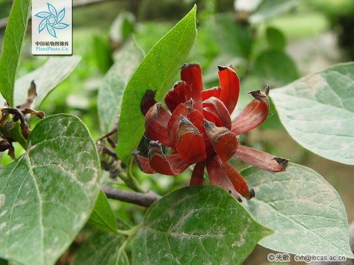落叶灌木;芽无鳞片。单叶对生,卵形至长椭圆状披针形,长8~20cm,全缘,表面暗绿色,背面稍有毛。花单朵顶生,径5~7cm,花萼和花瓣多而相似,紫红色或亮红褐色,雄蕊多数,花筒长约3.4cm,在口部不收缩,有香味;4~8月开花。