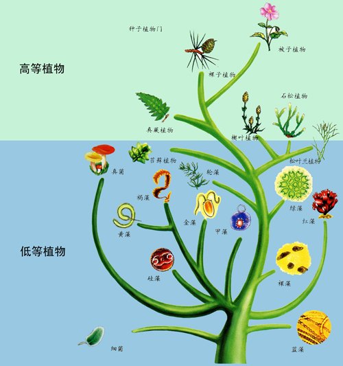 植物的进化历程,可以比喻为一棵有很多树杈的大树,