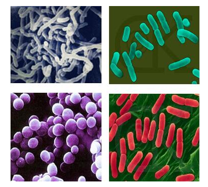 (左上)双歧杆菌,(右上)乳酸杆菌,(左下)肠球菌,(右下)大肠杆菌