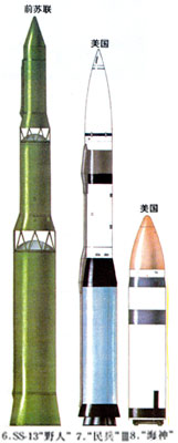 ¡¡¡¡SS-13¡°Ò°ÈË¡±£¬µ¯Í·ÖØ545¹«½ï¡¢100Íò¶ÖTNTµ±Á¿£¬Éä³Ì8000¹«ÀÃüÖо«¶È1300Ã×£¬×Ô1968ÄêÆð¹²Éú²ú60ö£»