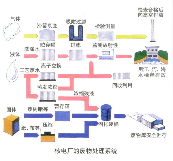 ¡¡¡¡ºËµç³§¡°Èý·Ï¡±´¦ÀíÉèÊ©½¨ÉèÑϸñÖ´Ðл·¾³Ó°ÏìÆÀ¼ÛºÍ¡°Èýͬʱ¡±£¨ÓëÖ÷Ì幤³ÌͬʱÉè¼Æ¡¢Í¬Ê±Ê©¹¤¡¢Í¬Ê±Í¶²ú£©Öƶȡ£Èý·Ï´¦ÀíµÄÔÔòÊǺÏÀí¿É¾¡Á¿µÍ£¬¼´°Ñ·ÅÉäÐÔÆøÌ¬Á÷³öÎïºÍҺ̬Á÷³öÎïµÄÅŷ޵ÖÁ×îµÍµÄˮƽ¡£ÆøÌå·ÏÎï¾´¦ÀíºÍ¼à²âºÏ¸ñºóÏò¸ß¿ÕÅÅ·Å£»µÍ·ÅÉäÐÔ·ÏË®¾¹ý´¦Àí£¬¼à²âºÏ¸ñºóÅÅ·Å£»·ÅÉäÐÔ»î¶È½Ï´óµÄÒºÌå·ÏÎïת»¯³É¹ÌÌå·ÏÎ¹ÌÌå·ÏÎï½øÐÐÖü´æ´¦Öá£