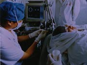 2000年初春,来自黑龙江某大学的一位学生正平静地躺在中国人民解放军海军总医院手术台上。她患有颅咽管瘤,4年前曾做过开颅手术,不幸的是现在肿瘤又复发了,肿瘤压迫视神经使她双眼视力下降,左眼视力0.02,右眼只有光感。此刻,医生们正用先进的脑外科机器人系统为她实施手术定位。只见她的头部贴有4个标志点,由这4个标志点建立一个空间坐标系,CT机以不同的角度为她扫描,之后,医生将9张CT图片输入计算机,屏幕上便显示出三维的病灶部位。医生在屏幕上确定手术的穿刺点和穿刺轨迹,5自由度的机器人对准穿刺点,然后自行锁定这一位置,为医生搭建一个稳固的操作平台,医生根据已标定的穿刺点进针和实施相应手术。整个手术过程20分钟。手术后,患者自己下床、穿鞋、走出手术室。三天后,患者出院了,双眼视力均恢复到0.9。