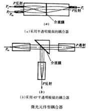 光耦合是对同一波长的光功率进行分路或合路。通过光耦合器,我们可以将两路光信号合成到一路上,如光耦合器示意图(a)所示,P1和P2两路光信号经耦合器后变成了一路输出P3。同时,光耦合器还可以对光进行分路,如耦合器示意图(b)所示,输入的光信号Pin经过介质膜的反射和折射,分成了两路信号,当然,这两路信号的功率比是可以调节的。
