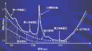从光纤损耗特性图可以看出,在1380nm附近有一个OH离子吸收峰。研究表明除了该吸收峰导致的损耗比较大外,其它区域光纤损耗都小于0.5dB/km(现在已有公司推出了全波(ALLWAVE)光纤,消除了这一损耗峰峰值,使整个频带更加平坦)。现在人们所利用的只是光纤低损耗频谱(1310~1550nm)极少的一部分。以常规SDH