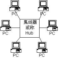 ¡¡¡¡ÐÇÐͽṹÊÇ×î¹ÅÀϵÄÒ»ÖÖÁ¬½Ó·½Ê½£¬´ó¼ÒÿÌ춼ʹÓõĵ绰¾ÍÊôÓÚÕâÖֽṹ¡£ÈçÏÂͼËùʾ£¬ÊÇĿǰʹÓÃ×îÆÕ±éµÄÒÔÌ«Íø£¨Ethernet£©ÐÇÐͽṹ£¬´¦ÓÚÖÐÐÄλÖõÄÍøÂçÉ豸³ÆÎª¼¯Ï߯÷£¬Ó¢ÎÄÃûΪHub¡£