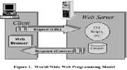 WWW体系机构提供了一个灵活且强有力的设计模式(图1)应用软件以标准数据形式显示 ,并能通过网络浏览器浏览。网络浏览器是一个网络应用软件 ,它能向有已命名的数据服务对象的网络服务程序和有标准格式编码数据的网络服务程序发送请求。