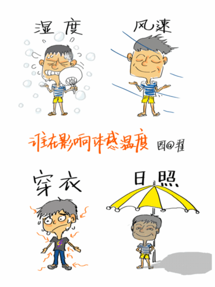 体感温度重在“感”,即人体对冷热的感觉,不能简单地理解为人体皮肤的温度。