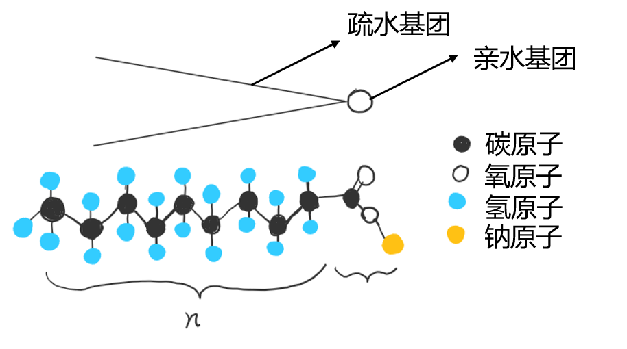 肥皂分子:脂肪酸钠 (图片来源:作者自制)