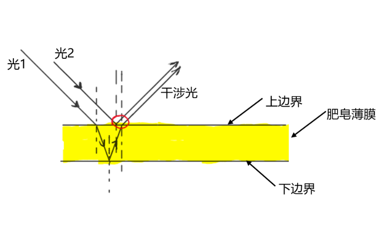 当我们在阳光下吹泡泡的时候,我们会发现泡泡的颜色像水一样动态流转且斑斓多彩。其实,肥皂泡是无色的,之所以在阳光下呈现斑斓的色彩,是阳光在透明薄膜的上下表面反射和相互干涉形成的。