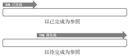 心理学家Bonezzi的研究发现,如果能够记录下自己完成目标的进度,那么通过调整自己对目标进度的参照标准,就能够重新恢复高动机水平的状态。参照标准指的就是在记录和提醒自己的目标进度时,采用的是以已完成进度为参照标准,还是以待完成进度为参照标准,如下图: